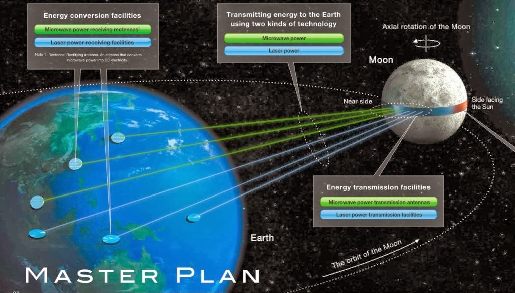 Щоб мінімізувати витрати на доставку сонячних панелей на Місяць (що практично неможливо) японці вирішили виробляти їх прямо на поверхні супутника. Річ у тому, що місячний ґрунт (реголіт) багатий на більшість необхідних елементів, необхідних для виготовлення батарей і спорудження споруд. Корпорація Shimizu планує відправити першу партію роботів-робітників та людей, які їх супроводжують, на Місяць у 2035 році.